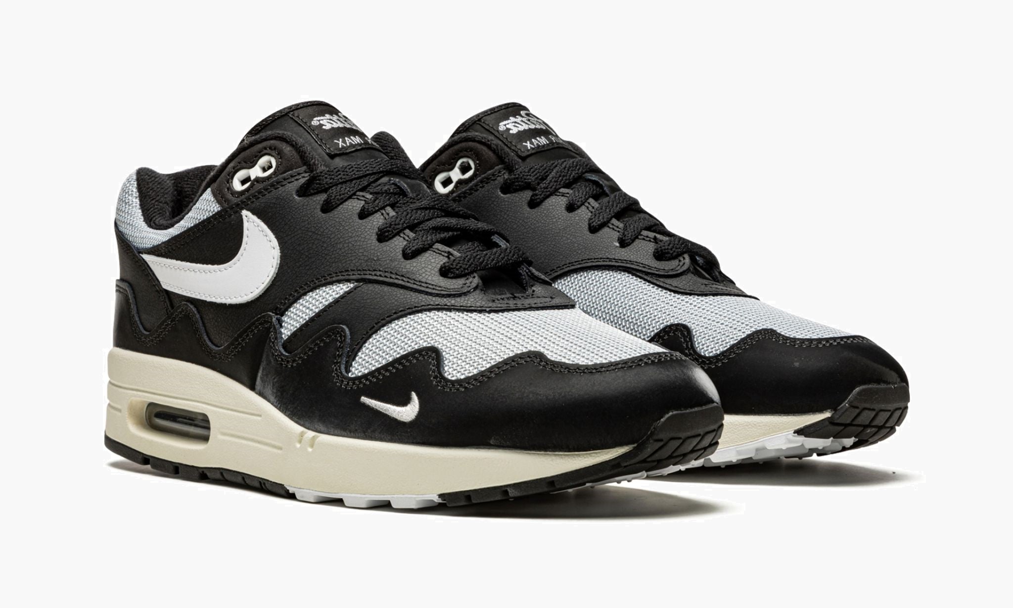 The Patta x Nike Air Max 1 “Black” is the fourth colorway released of the popular 2021 collaboration that sees the famous Dutch sneaker boutique re-imagine the classic runner. The most neutral look for Patta’s Air Max 1 highlighted by added “waves” on the mudguard, this version features a silver mesh base with black crackle-textured leather panels across the upper. The wavy mudguard wrapping the shoe comes in a smooth leather. All branding across the upper including the Patta logo on the tongue tag and added mini Swoosh near the toe also come in silver thread, while the larger side Swooshes and top plastic eyelets appear in bright white for added contrast. The foam midsole receives a vintage effect in Nike’s off-white shade of “Coconut Milk” to complete the clean look. Release date December 10, 2021