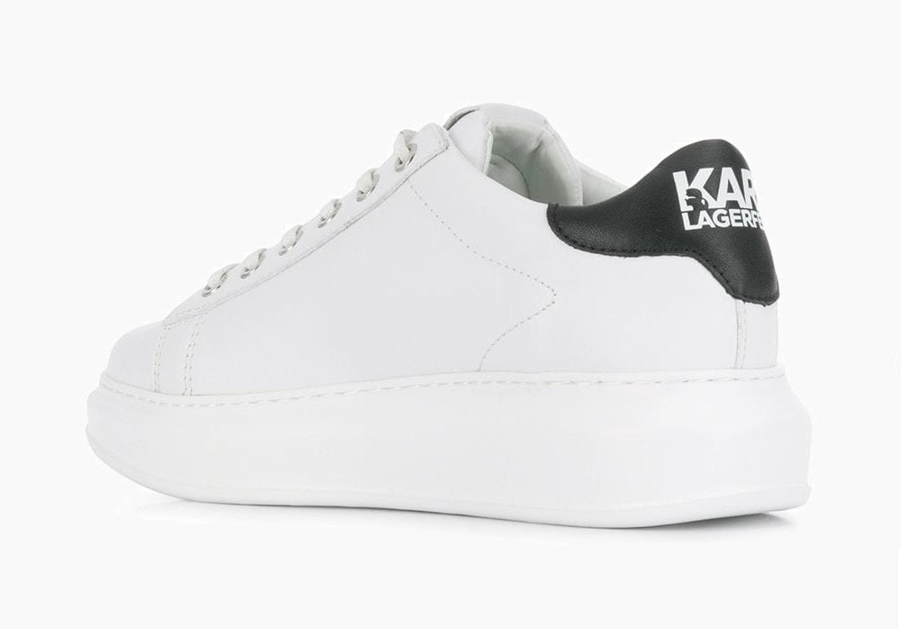 White leather and rubber Ikonik Karl sneakers from Karl Lagerfeld featuring a round toe, a lace-up front fastening, a branded insole, a contrasting heel counter, a flat sole and a logo plaque at the tongue.